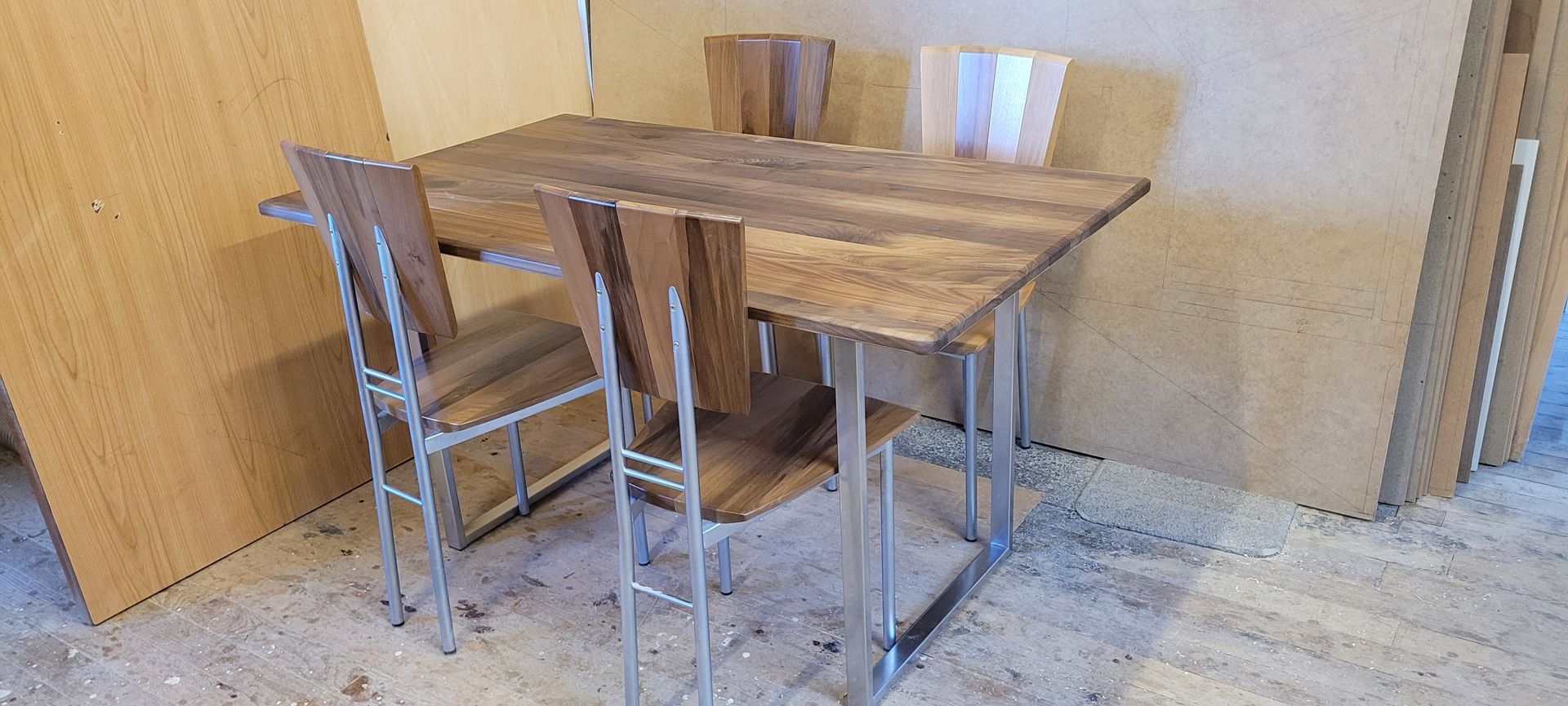 Aus Lagerbestand, Tisch in Nussbaum massiv 140 x 80 cm mit 4 Stühlen, Preis 1200.- Fr. + MWST