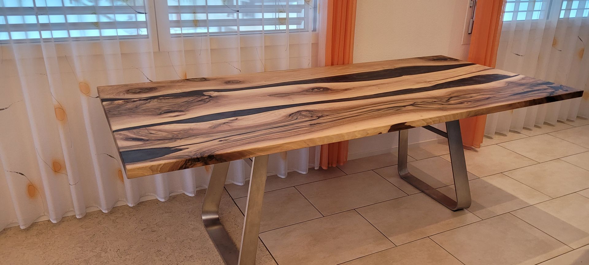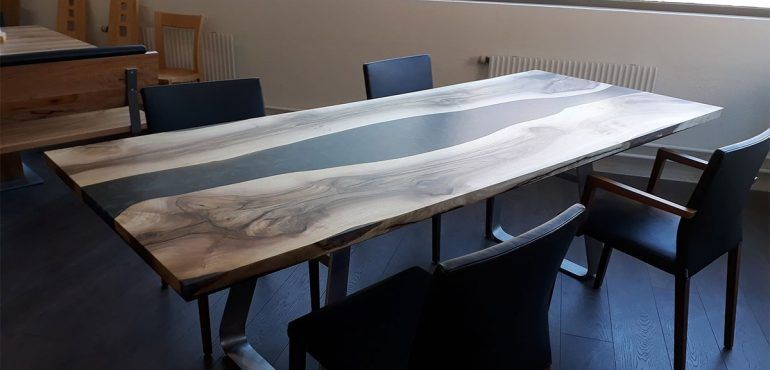 Es stehen Ihnen auch hier alle Wege offen und die Kombinationsbreite ist schier unbegrenzt, wenn man sich einen einzigartigen Tisch vom Fachmann anfertigen lassen möchte. So fertigen wir beispielsweise auch Expoxidharz-Tische und verleihen Ihrem Esszimmer eine einzigartige Note. Gerne unterstützen wir Sie vorab bei der Planung, sodass wir exakt Ihren Geschmack treffen und uns schon zu Beginn Ihrer Zufriedenheit versichern können.